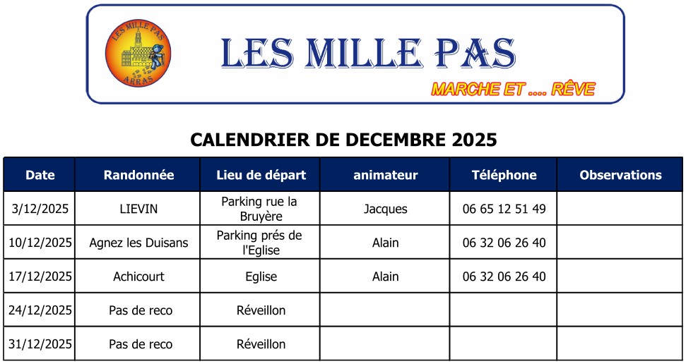 Le calendrier du mercredi est mensuel. Il sera mis sur le site à la fin du mois précédent.
