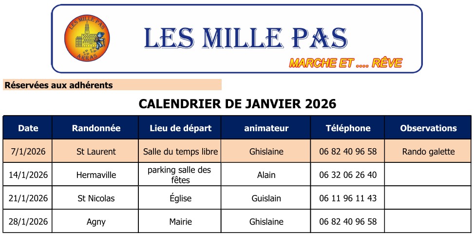 Le calendrier du mercredi est mensuel. Il sera mis sur le site à la fin du mois précédent.
