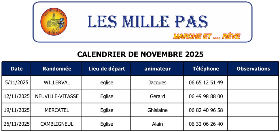Le calendrier du mercredi est mensuel. Il sera mis sur le site à la fin du mois précédent.