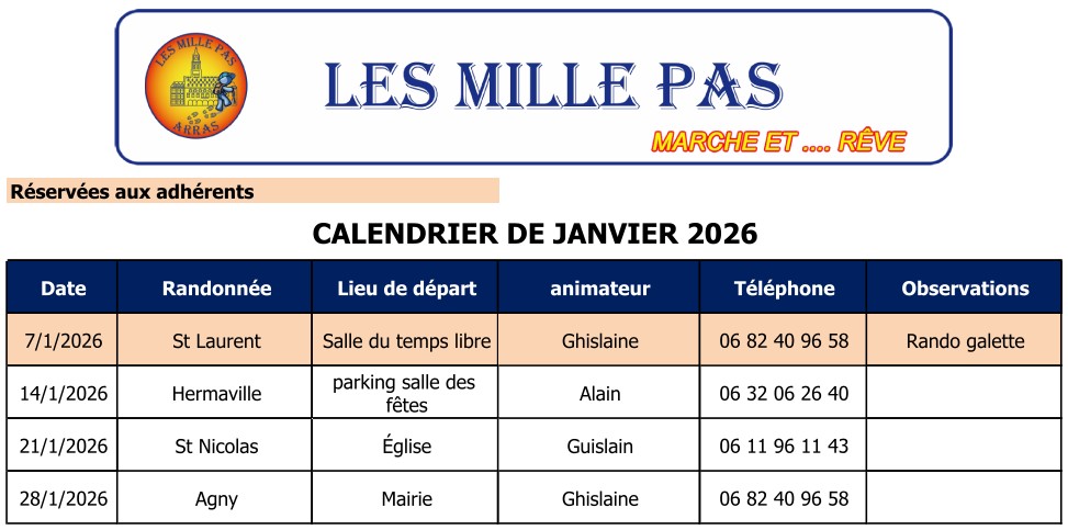Le calendrier du mercredi est mensuel. Il sera mis sur le site à la fin du mois précédent.
